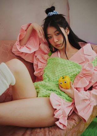 Cabbage represents everything whimsical and carefree in my Wonderland. She embodies the love for oversized silhouettes, vibrant hues, and a playful, childlike essence. In this fantastical realm, we resist the urge to grow up and embrace the magic of innocence.